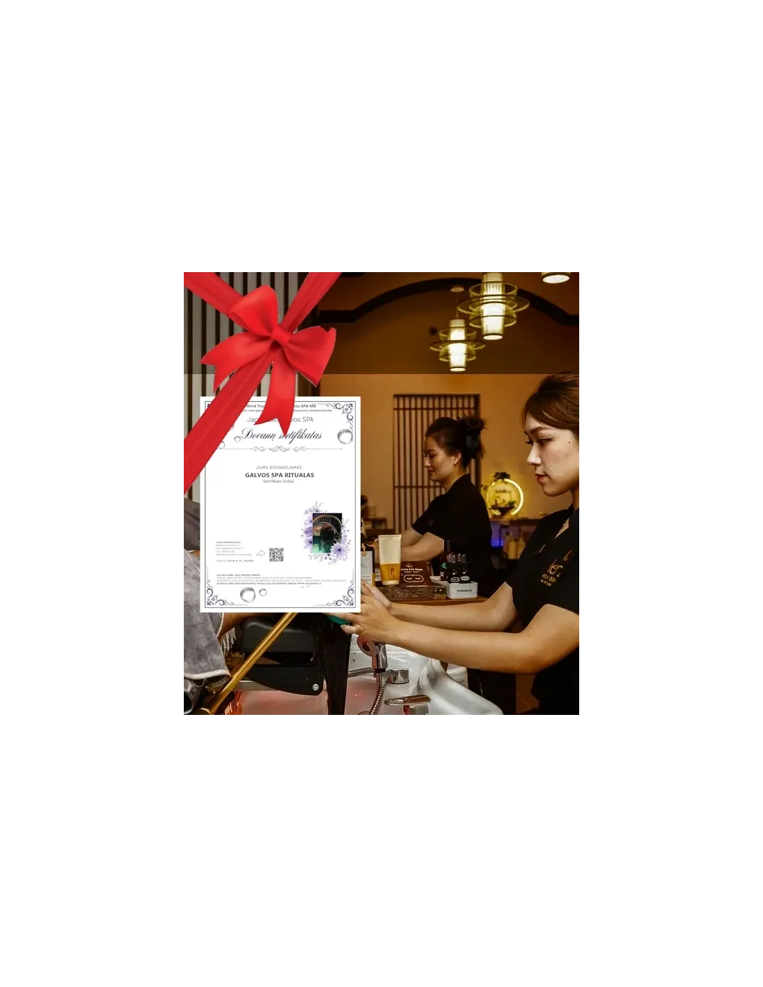 ROYAL IMPERIAL HEAD SPA DVIEMS - unikalus, ilgas ir gilus head SPA ritualas dviem, atliekamas vienu metu. 2val.30min. trunkanti patirtis apjungia gilų galvos ir veido masažą, hidroterapiją, daugiaetapį galvos odos valymą, intensyvias plaukų priežiūros procedūras, garų terapiją su kupolu ir aromaterapiją. Ritualą užbaigia plaukų suformavimas bei jauki akimirka su gėrimu ir šokoladu. Tai santūri, prabangi ir lėta poilsio patirtis, skirta kokybiškam laikui kartu.
