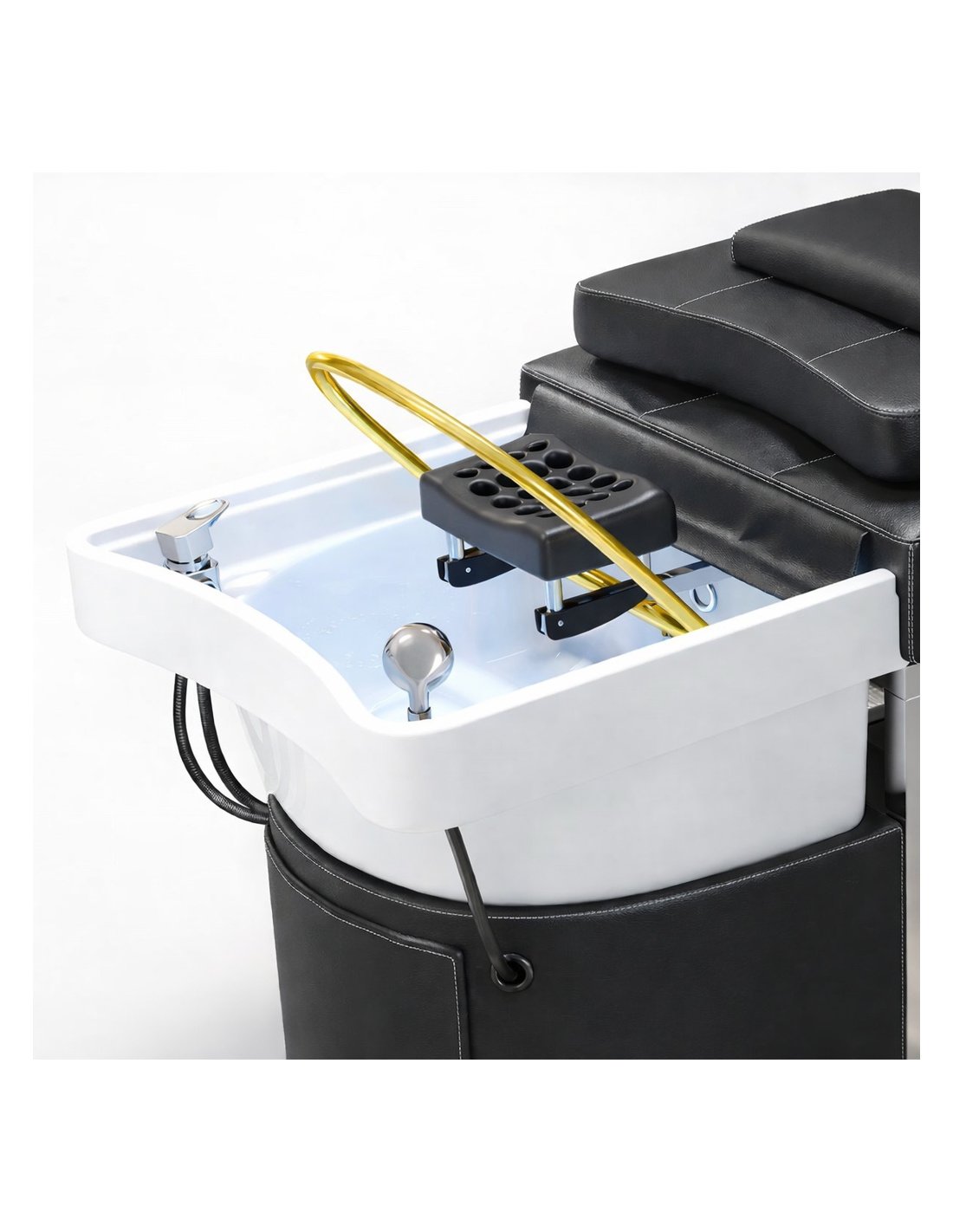 Ergonomiška, minkšta gulimoji dalis užtikrina maksimalų kliento patogumą net ilgesnių procedūrų metu. Integruota vandens ir garų sistema leidžia atlikti visą galvos SPA ritualą vienoje vietoje – be papildomos įrangos ar perkėlimų.