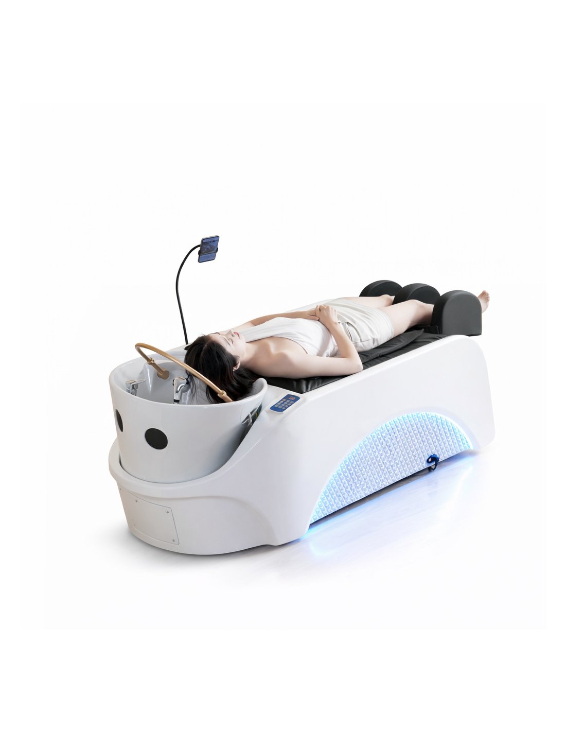 Tai PREMIUM klasės Head Spa procedūrų lova, skirta salonams, kurie siekia išskirtinės kokybės, komforto ir modernaus dizaino. Įrenginys sujungia plaukų plovimo, galvos odos masažo ir garų terapijos funkcijas vienoje ergonomiškoje sistemoje.