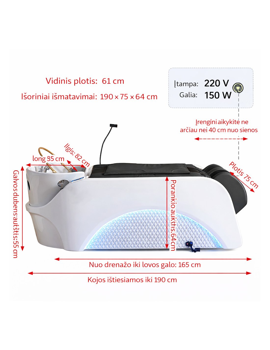 Produkto tipas: Head Spa procedūrų lova / plovimo ir masažo krėslas
