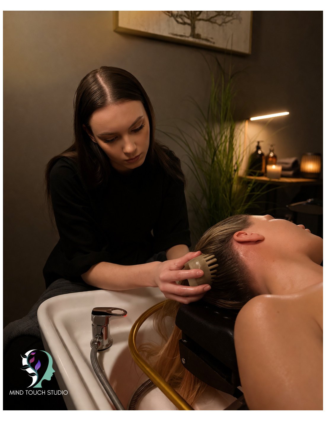 Procedūros metu atliekamas galvos masažas „žaidimo su plaukais“ technika, derinant švelnius, ritmiškus prisilietimus ir specialius įrankius. Subtilūs pojūčiai veikia per nervų sistemą, padeda atsipalaiduoti, pagerina savijautą ir suteikia lengvumo jausmą. Aromaterapija papildo ritualą harmoningais kvapais, kurie dar labiau sustiprina atsipalaidavimo efektą.