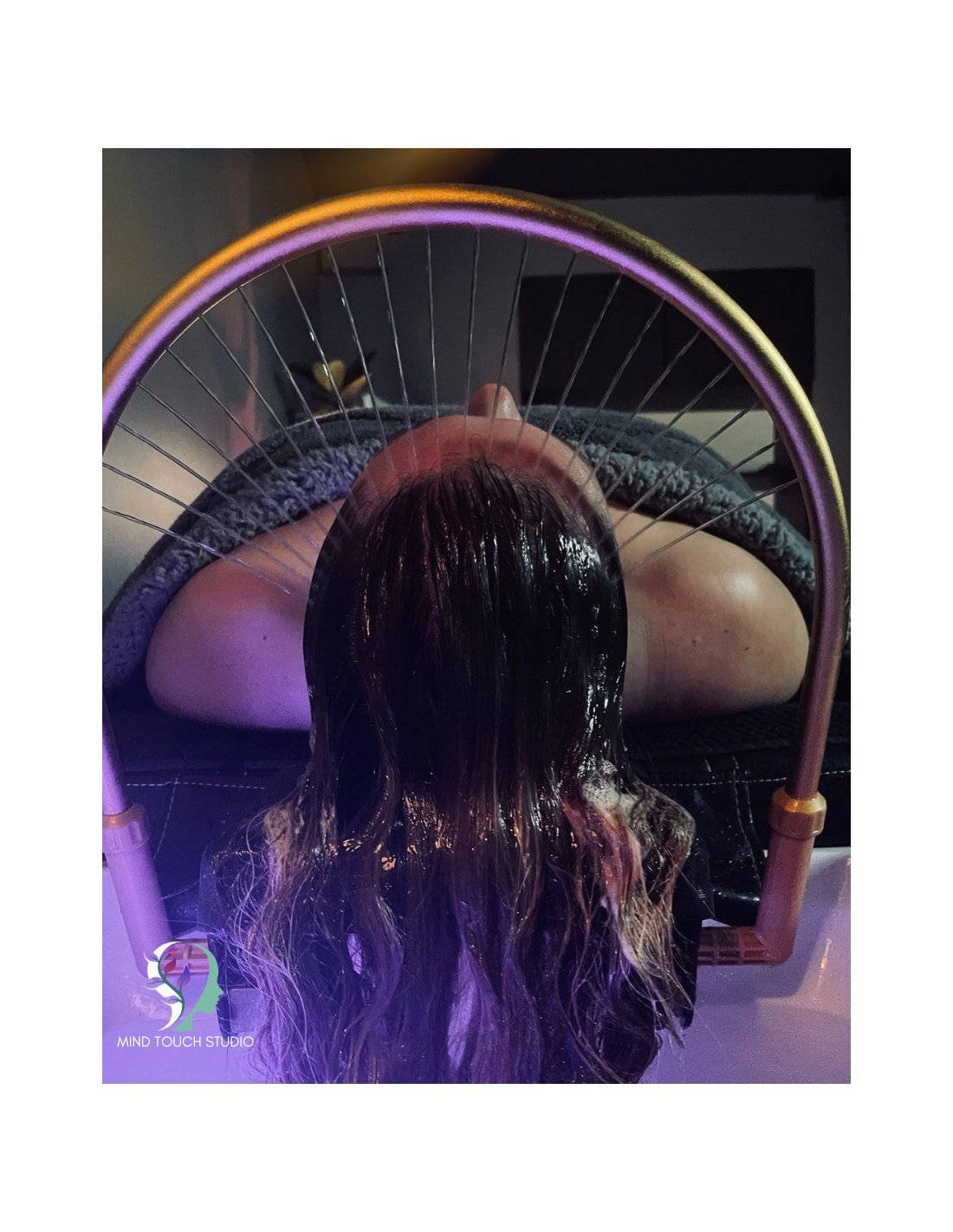 1val. 40min. trukmės patirtis apjungia galvos masažą „žaidimo su plaukais“ technika su specialiais įrankiais ir vandens srove, veido, pečių bei dekoltė masažą, galvos odos ir plaukų valymą.
